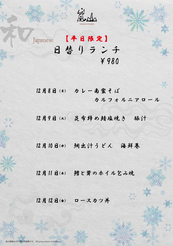 いつもJapanese & Modern Chinese 嵐山をご愛顧賜り誠にありがとうございます。