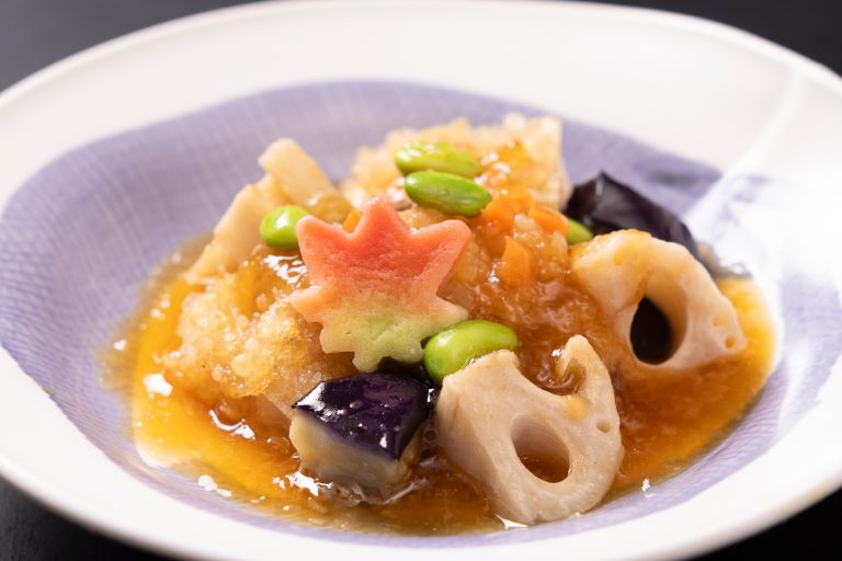 ❶ 鶏もも竜田の吹き寄せ霙煮